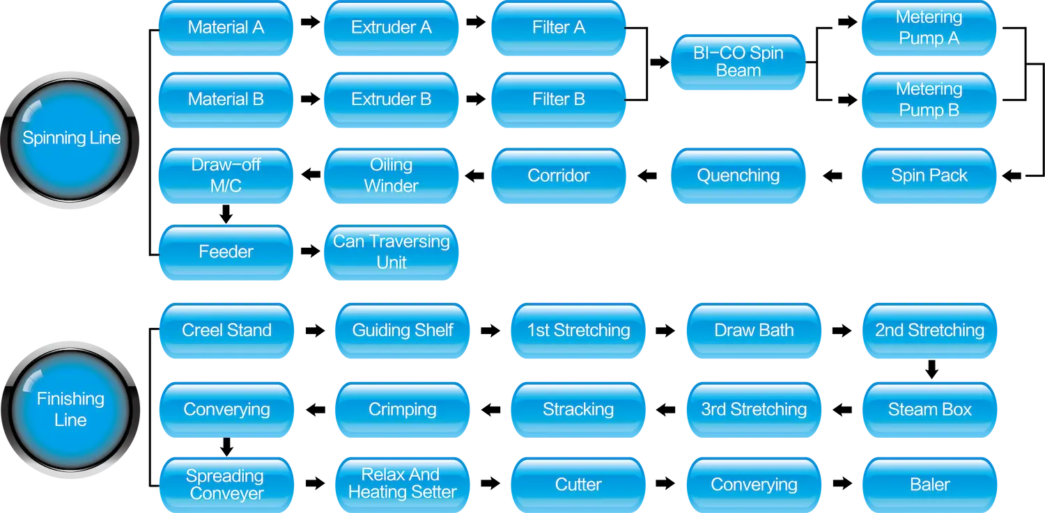 (3,000T/Y-15,000T/Y) Composite fiber (ES composite fiber, Sea-island composite fiber) Production Line